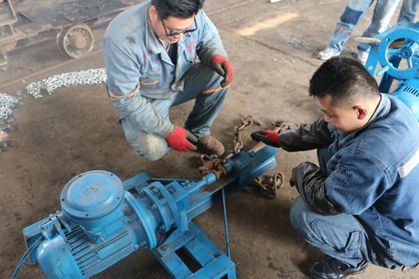制造舊刮板鏈螺栓拆卸機。由于生產戰線長,刮板輸送機較多,井下潮濕的環境讓刮板鏈螺栓浸滿污垢,生起鐵銹,給人工拆卸帶來困難。以前處理的辦法是用氣割把螺栓割掉重新換上新的螺栓再使用,為節省開支,機廠領導帶領電焊工使用2.2kw的小型電機,利用減速箱和螺栓套頭,制造出刮板鏈螺栓拆卸機,解決了舊刮板鏈螺栓無法拆卸的難題,大大減少了新配螺栓使用量。#p#分頁標題#e#